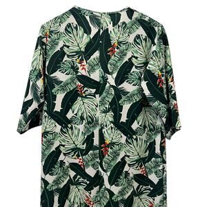 Rachel Zoe Swim Coverup Duster Green White Tropical Palm Print One Size