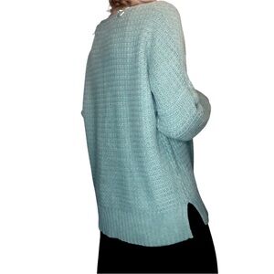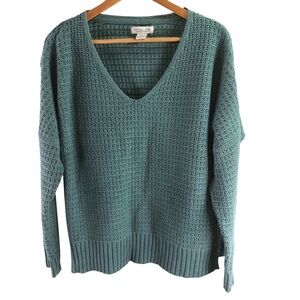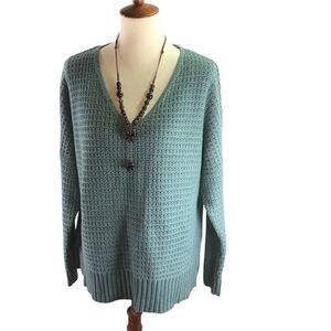 Rachel Zoe Sz L Sage Green Waffle Knit V Neck Boxy Loose Classic Preppy Cozy