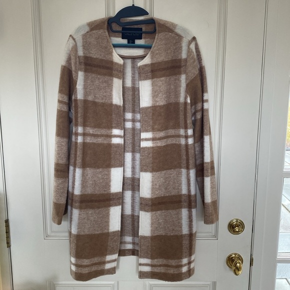 Rachel Zoe Tan Cream Plaid Coat - Lightweight Large