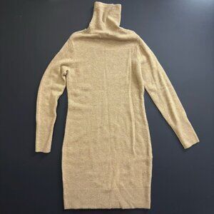 Rachel Zoe Tan Rib Knit Turtleneck Sweater Dress Midi Sweater