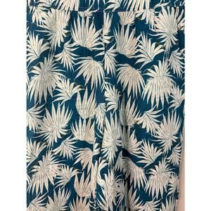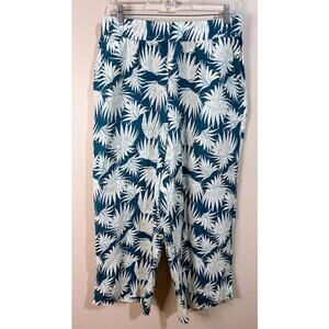Rachel Zoe Teal and White Tropical Print Linen Wide Leg Pull on Pants Size Large
