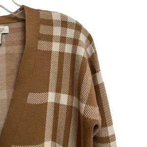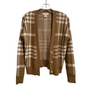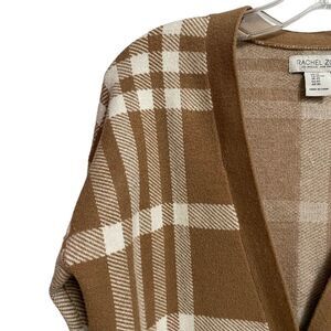 Rachel Zoe Three Button Front Cardigan Sweater Size XS Tan White Plaid Academia