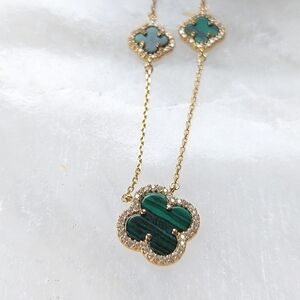 Rachel Zoe Three Clover Alhambra Necklace in 18K GP Silver & Malachite NWT