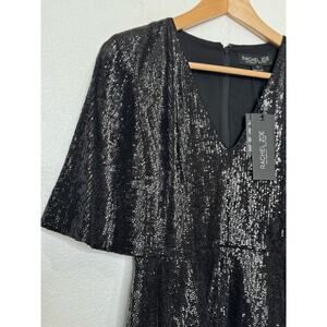 Rachel Zoe Top Sequin Peplum Short Flutter Sleeve Black Size 0 NEW