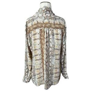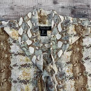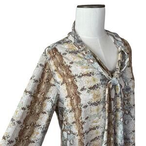 Rachel Zoe Top Women's L Tie Neck Blouse Snake Animal Print Long Sleeve Bow