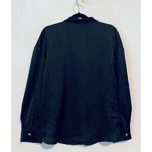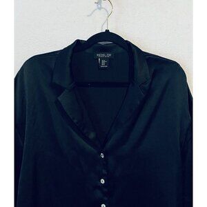 Rachel Zoe Top Womens XL Black Button Up Satin Long Sleeve Minimalist Witchy