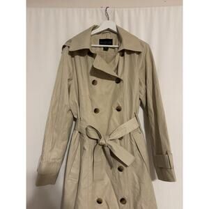 Rachel Zoe Trench Coat XL Double Breasted Pockets Belt Lightweight Hooded Long
