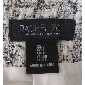The Rachel Zoe Tweed Mini Aline Skirt in women's size 8 is a versatile piece perfect for various occasions such as parties, casual outings, and business meetings. This skirt features a stylish tweed pattern in a black and white fabric with a zipper in back. The mini length and classic style make it a trendy choice for any season, while the lined interior ensures comfort and quality. Perfect for those who love a hipster, geeky, or retro aesthetic, this skirt from Rachel Zoe is a fashionable addition to any wardrobe.