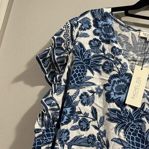 Rachel Zoe Blue Pineapple Floral Women's Top NWT 2X