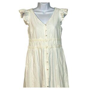 Rachel Zoe White Eyelet Lace Maxi Dress W/ Ruffle Sleeves & Button Front Size 4