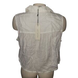 Rachel Zoe White Linen Button-Up Sleeveless Blouse Size M beach coastal NEW