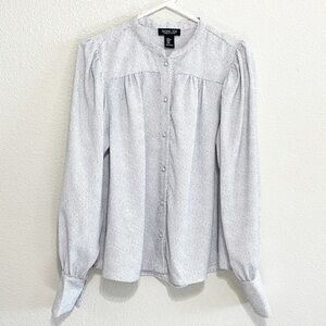 Rachel Zoe White Pokka Dots Long Sleeve Top Button Down Blouse Size M