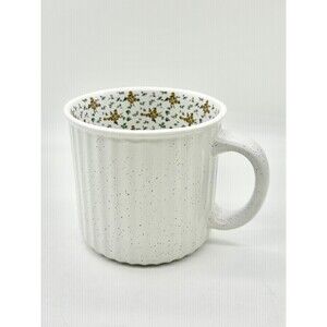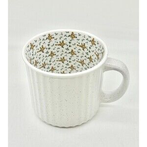 Rachel Zoe White Ribbed Ceramic Coffee Mug Cup with Floral inside pattern