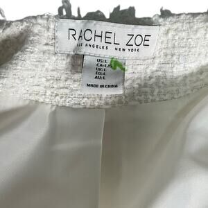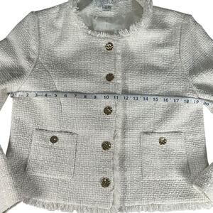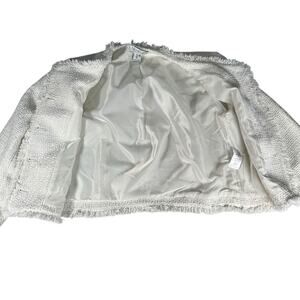 Rachel Zoe White Tweed Fringe Blazer Jacket Gold Buttons Large Quiet Luxury