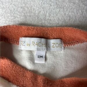 Charming baby dress by Rachel Zoe. Features a white base with orange accents.