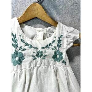 Rachel Zoe White with Blue Embroidered Floral Shirt Short Ruffle Sleeves 4T