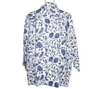 Rachel Zoe Wm’s 2X Linen Blue Floral Open V Neck Collar Pull Over Top Blouse
