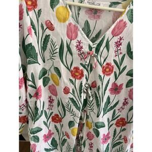 Rachel Zoe Women 2X Linen Blend Blouse Top Floral Cottage Core Coastal Grandma
