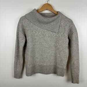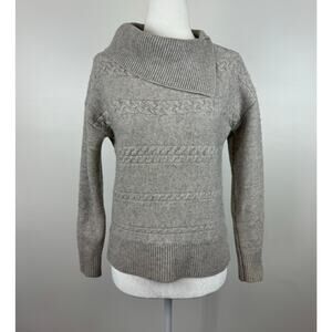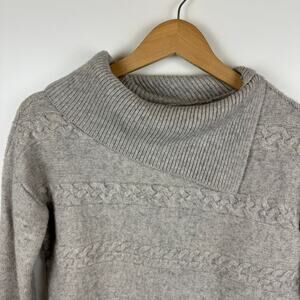 Rachel Zoe Womens 100% Cashmere Cable Split Neck Sweater in Grey Sz S Minimalist