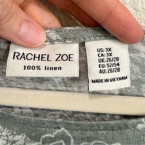 Rachel Zoe Womens 100% Linen 3X Light Green Paisley Floral Blouse Beach Boho Relaxed fit Vacation