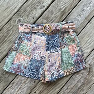 Rachel Zoe Women's 100% Linen Colorful Belted Shorts Size S