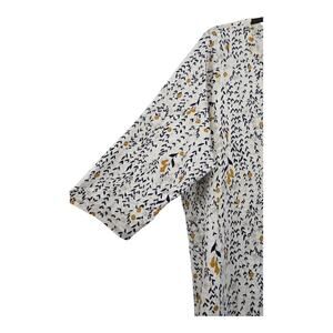 Rachel Zoe Womens 1X Top Blouse 100% Linen V-Neck 3/4 Sleeve Floral White Blue