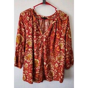 Rachel Zoe Women's 2X Boho Peasant Blouse 3/4 Balloon Sleeve