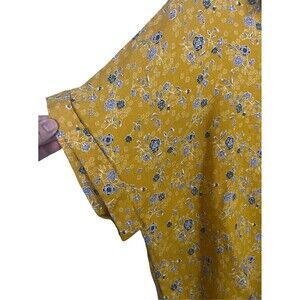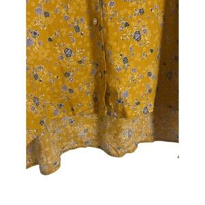 Rachel Zoe 100% linen boxy yellow button up with little blue flower pattern , step hem