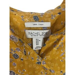 Rachel Zoe Women’s Boxy Button Up Shirt L 100% Linen Yellow Blue Cottagecore