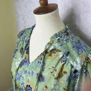 Rachel & Zoe Women's Floral Blouse LS Smocked Green Multicolor Size Small NEW