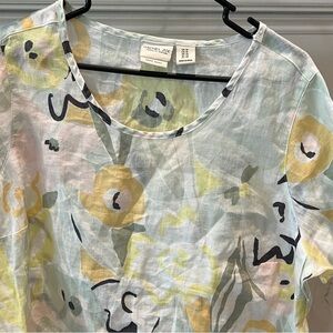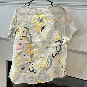 Rachel Zoe Womens Floral Print Linen Top Plus Size 1X Multicolor Short Sleeve