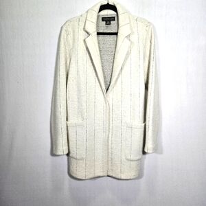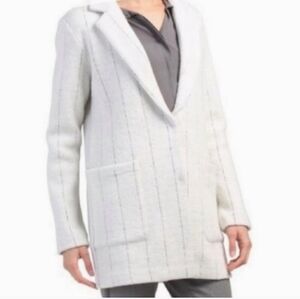 Rachel Zoe Wool Blend Ivory Pinstripe Long Blazer Coat Jacket