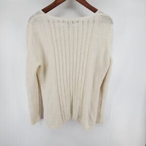 Rachel Zoe Womens Karla Open Cream Lace Knit Stretchy Cotton Blend Sweater| XL