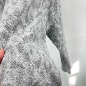 Rachel Zoe Women's Knitted Cowl Neck Leopard Print Pullover Sweater Gray Medium