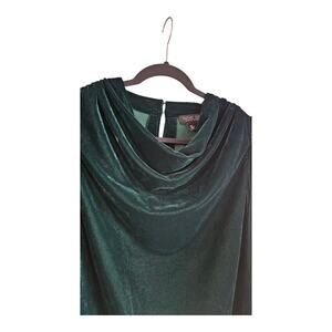 Rachel Zoe Womens L Drape Neck Velvet Blouse Cuffed Long Sleeve Emerald Green