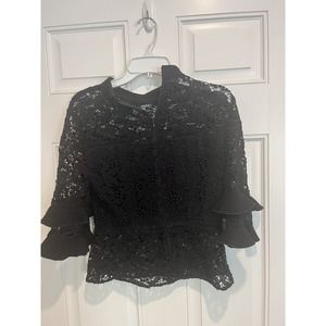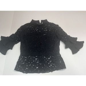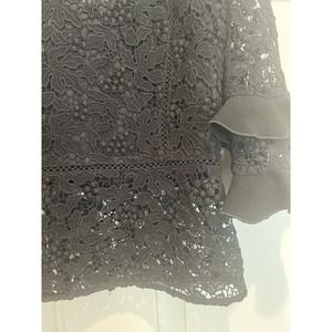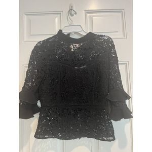 Rachel Zoe Womens Lace 3/4 Sleeve Size 2 Back Zip Blouse Black