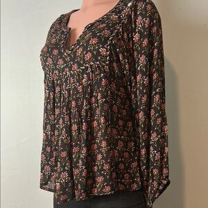 Rachel Zoe Women’s Long Sleeve Peplum Boho Tassel Blouse Size XS Floral
