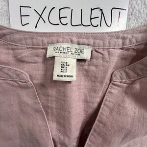 Rachel Zoe Women's Long Sleeve V-Neck Blouse Top Linen Blend Blush Pink Size Small