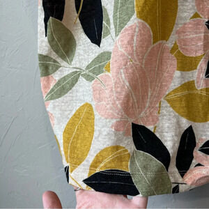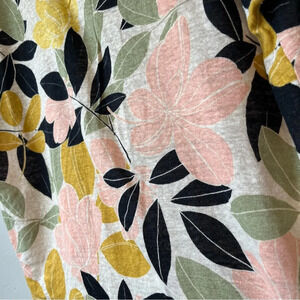 Rachel Zoe Womens M Multi Floral 100% Linen Button V Back Costal Top loose boho