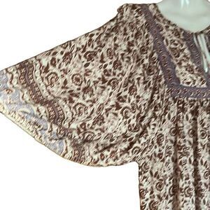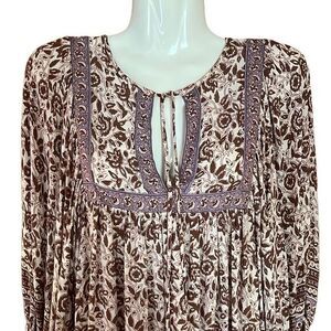 Rachel Zoe Floral Babydoll Top Womens Small Balloon Sleeve Tassels. Deep back keyhole with pearl button closure. Long enough for a dress short enough for a top..your decision! Hippie aesthetic. Ruffle bottom hem. Lightly textured fabric. Pit to pit flat lay 20” Shoulder to bottom hem 29” please note difference in tassels. Size S Small