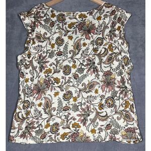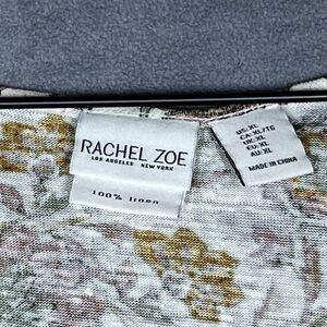 Rachel Zoe Women's Top Size XL Floral Print Linen Scoop Neck Flutter Cap Sleeves