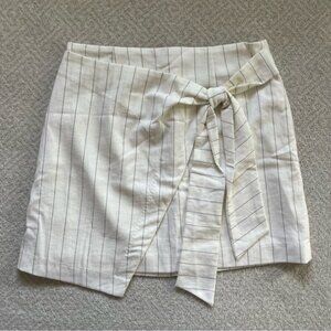 Rachel Zoe wrap mini skirt. Perfect to wear casually or for work. Zips in the back and the wrap part adjusts/tightens. White with thin black pinstripes. Excellent condition, only worn about 5 times. Size 2.