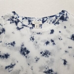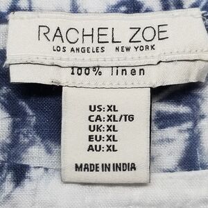 Rachel Zoe Womens Size XL 100% Linen Top Blue White Tie Dye Cap Sleeves Hi Low Beach Coastal Lagenlook Bohemian BOHO Festival