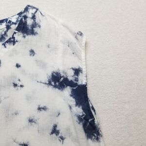 Rachel Zoe XL Linen Top Blue White Tie Dye Cap Sleeves Hi Low Beach Coastal