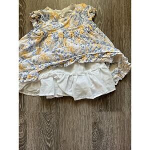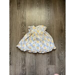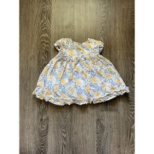 Rachel Zoe Yellow Blue Floral Ruffle Baby Dress Snap Button Short Sleeve Sz 24M