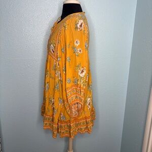 Rachel Zoe Yellow Floral Bohemian Blouse Shirt Tunic Top