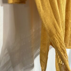 Rachel Zoe Mustard Yellow Linen Slouchy Coastal Grandma Lagenlook Detailed Hem Designer Tunic Sweater