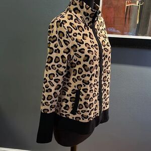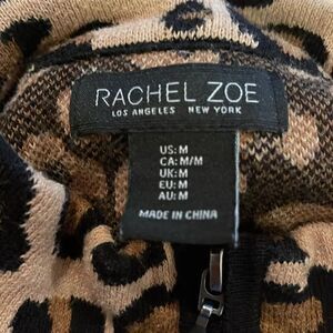 Rachel Zoe animal print black edging zipper front soft sweater cardigan. Wide ribbed cuffs. Ribbed hem. Cotton/polyester blend. Substantial weight. Medium. Excellent condition. Nonsmoking home.