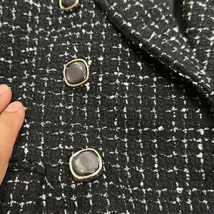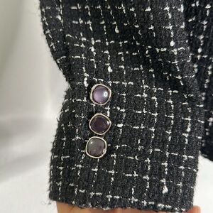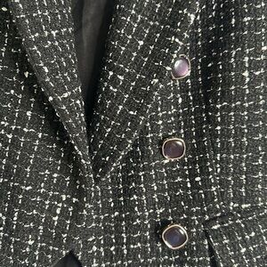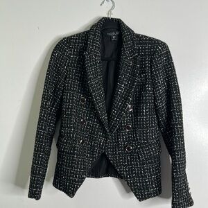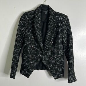 Rachel Zoe black tweeted back and sliver double breast jacket size small great condition armpit to armpit 18 inches shoulder to hem 23 inches