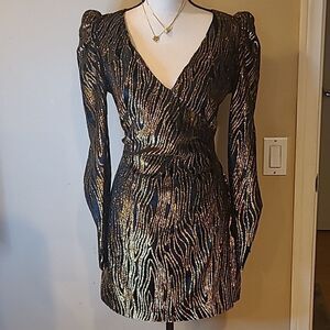 Rachel Zoe bronze Gold Zebra Dress Mini Black Tie sz 8